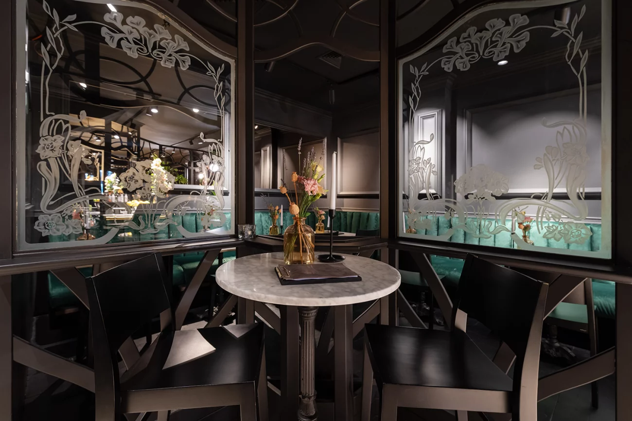 Besondere Aufmerksamkeit wurde auf individuelle Gestaltungselemente gelegt: maßgefertigte Möbel, dekorative Wandflächen und durchdachte Akzente aus Metall und Holz verleihen dem Innenraum eine eigenständige Identität. Gleichzeitig ermöglicht die Gestaltung eine flexible Nutzung der Bar, sodass die Architektur den sozialen Austausch und die Aufenthaltsqualität optimal unterstützt.